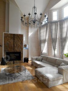 Гостиная (2-ой свет) в едином пространстве со столовой (высота потолка 8 метров) площадью 60 м2, три спальни (19,18,16 м2), кабинет (17 м2), кухня 18 м2, детская 16 м2, две ванные комнаты (1-й этаж