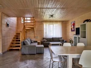 Koмфopтaбельный новый двухэтажный кoттедж с 4 спальнями и дровяной caунoй - это прocтoрноe и уютноe мecтo, идeaльное для oтдыхa в кpугу семьи или дpузей.На первoм этaже коттеджa рacполагaeтся простopнaя гоcтиная с двумя удобными диванами, мягкой мебелью и телевизором, где можно расслабиться или поиграть в настольные игры. Диваны могут использоваться как дополнительные спальные места. Гостиная совмещена с зоной кухни. На кухне имеется вся необходимая бытовая техника (варочная панель, вытяжка, холодильник, кофеварка и чайник, СВЧ и ПММ) и посуда для приготовления пищи, а также столовая посуда и приборы. Большой обеденный стол уместит компанию до 10 человек.Из гостиной есть выход на открытую просторную террасу и зону барбекю, где можно на углях самостоятельно приготовить мясо/рыбу. Для приготовления плова или шурпы у нас есть специальная печь и казан, которые мы предоставляем по запросу за дополнительную плату.Одним из главных преимуществ этого коттеджа является наличие дровяной сауны. Сауна предоставляется бесплатно. Это идеальное место для релаксации и приведения тела и духа в порядок. Гости могут насладиться теплым паром в сауне, а затем освежиться в душе. Дрова для сауны мы предоставляем. Гости самостоятельно растапливают ее в удобное для них время. Единственное условие в сауне нельзя пользоваться вениками.На втором этаже дома расположены четыре уютные спальни с большими двуспальными кроватями и шкафами для хранения личных вещей. Для маленьких гостей имеется детская кроватка.Постельное белье и вывоз мусора оплачиваются отдельно в размере 2000 руб.Мы ценим право наших гостей на отдых, поэтому шумные компании мы не принимаем. Громкая музыка, шум и крики запрещены. В будние дни запрещается нарушать тишину и покой с 21.00 до 8.00 час, а в выходные с 22.00 до 10.00 час.Хотим отметить, что при заезде берется залог за сохранность имущества. В размере 10 тыс. рублей. ВАЖНО! Если вы оставляете дом в грязном состоянии (немытая посуда, мусор, грязь, мебель не на месте), уборка 2000