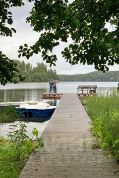 Шикарный двухэтажный коттедж Сосново на берегу озера с банкетным залом и видовой террасой, беседка на берегу, свой пирс и баня, в 60 км от города по Новоприозерскому шоссе. Общая площадь коттеджа 230 кв.м. - большая видовая терраса с мебелью; - прихожая с гардеробной; - большой красивый зал со столом на 40 человек, панорамными окнами с видом на озеро; - кухня со всей необходимой техникой; - 7 спальных комнаты; - 3 санузла и душевая; На огороженном участке 40 соток расположены: - беседка с мангалом; - баня-бочка на дровах (оплачивается отдельно 4000 рублей за 4 часа) баня на берегу озера (6000 рублей за 4 часа ); - маленькая беседка (2000 - сутки, по предварительному запросу); - волейбольная площадка с футбольными воротами ; - свой пирс, можно, взять в прокат лодку и катамаран, дополнительно вы можете арендовать 10-литровый казан , тандыр и коптильню ) Рядом с домом: - сосновый лес; - в 3 км горнолыжный курорт Игора.