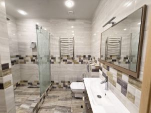 Интерьер выполнен в кантри-стиле: натуральные материалы, тёплые оттенки и продуманное освещение. Атмосфера загородного уюта и гармонии чувствуется в каждой детали.