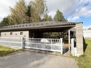 Навес для двух автомобилей с автоматическими воротами, дополнительные места для хранения.