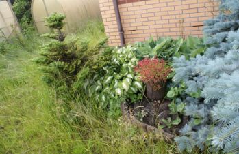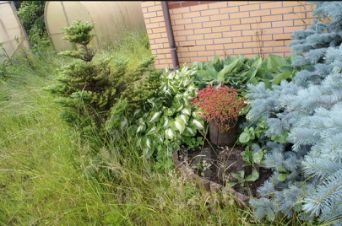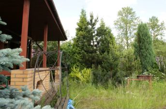 Участок огорожен, на территории высажены красивые хвойные растения, плодовые деревья и кустарники, цветы. Есть беседка, детские качели, место для барбекю, площадка для парковки двух автомобилей.