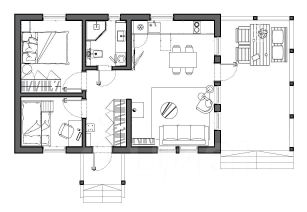 В доме кухня-гостиная, две спальни, с/у и терраса.