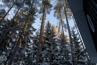 Участок 4 сотки. Огорожен по периметру. Сосны, ели и черника. Есть рельеф. Тихая улица. Сосед только с одной стороны (его не видно). Парковка на два авто.