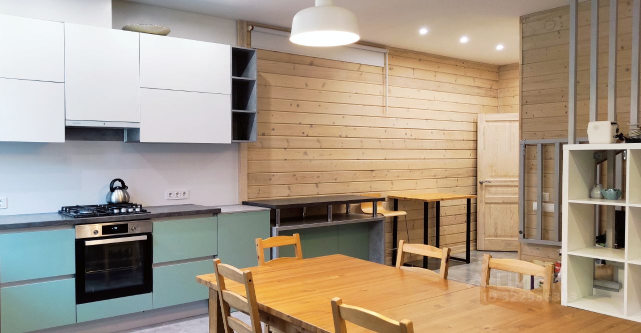 На 1 этаже большая кухня- гостиная с уютной удобной, мебелью, экраном и проектором. Большой раздвижной стол, диваны, встроенная техника: холодильник, посудомоечная машина, в раковине перемалыватель отходов, микроволновая печь, газовая плита с предохранителем на утечку газа, мощный духовой шкаф.