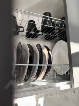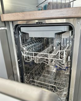 В кухонной зоне есть: ПММ, варочная- панель, микроволновая печь, электрический чайник, холодильник, посуда и приборы.