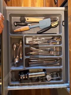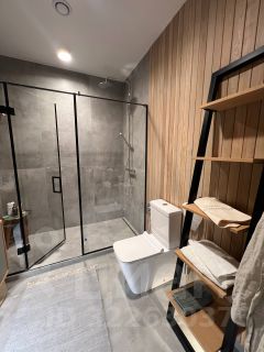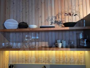 - планировка: функциональная кухня со всей необходимой качественной посудой, посудомоечной машиной, духовкой, большая гостиная с раскладным диваном и панорамными окнами, две спальни, гардеробная комната, хозяйственная комната;