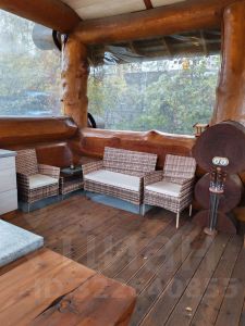 Величественный дом премиум-класса из отборного круглого бревна с открытой обустроенной террасой, большим красивым камином и высоким сводчатым потолком поражает своим масштабом и грандиозностью.