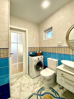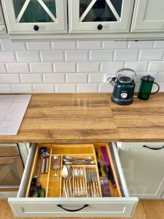 Дом оборудован всем необходимым для комфортабельного проживания , новая мебель, двухспальная кровать, большой диван с хорошим матрасом, новая современная техника: стиральная машина, посудомоечная машина, варочная поверхность, духовой шкаф, СВЧ, большой телевизор с подключением к интернету, видеофон, посуда.