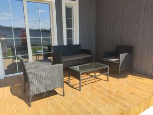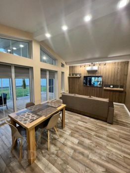 Просторная кухня-гостиная ( в гостиной раскладной диван), одна спальня (двуспальняя кровать 160х200), ванная комната, веранда (на веранде садовая мебель).