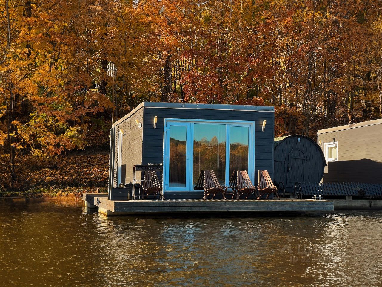 и тёплый домик на воде с панорамным видом на озеро, вмещающий в себя 4 человека.