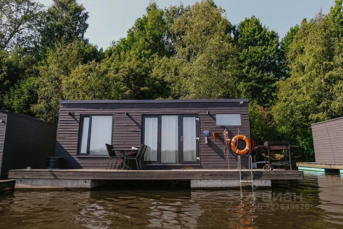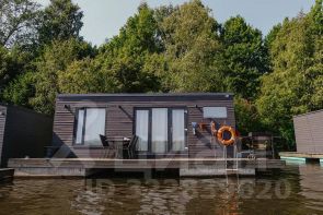 Уютный домик на воде, вмещающий в себя 4 человека, 1 спальня (огорожена выдвижной перегородкой), с большими окнами и открытой террасой.