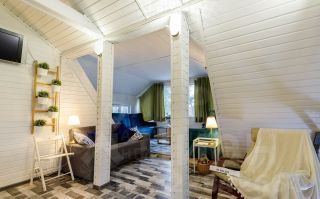 Участок облагорожен везде английский газон (можно играть в мяч), дома между собой выгорожены высоким забором. Возле домика проживает белочка и семейка ежей. Заезд 18.00 выезд 15.00.