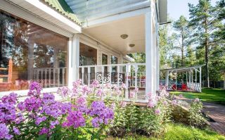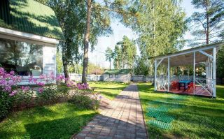 Коттедж расположен на облагороженном участке 20 соток, выгороженные высоким забором. На приусадебном участке растет стриженный спортивный газон где можно играть в игры с мячом. Коттеджный посёлок раскинулся в лесу.