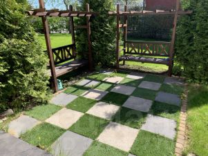 - Ландшафтный дизайн участка выполнен в английском регулярном стиле с современным освещением.