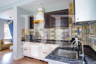 Кухонный встроенный гарнитур, бытовая техника (варочная панель, посудомоечная машина, холодильник, микроволновая печь, стиральная машина). Глубокая очистка питьевой воды.