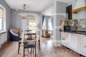 Большая кухня гостиная, 25 кв.м. расположена на первом этаже дома.