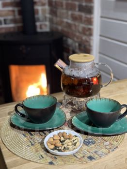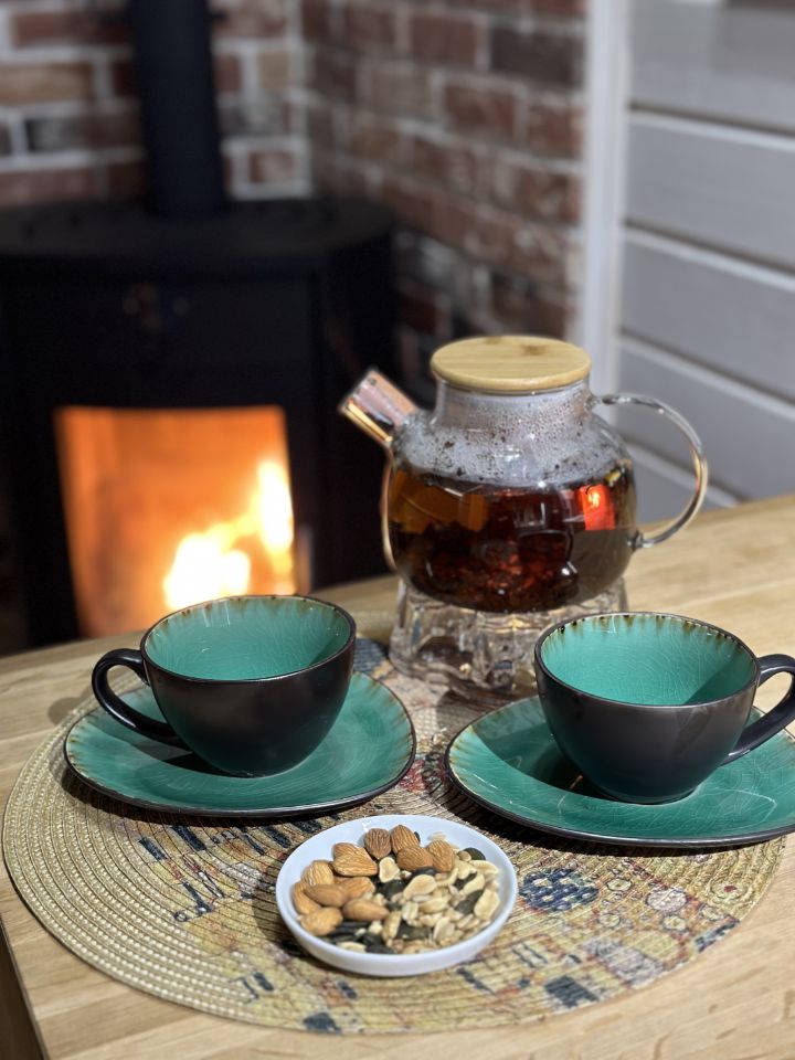 6. Печь-камин, дрова для уютных вечеров. Так как дом очень теплый, обогревается теплыми полами. Камин для антуража.