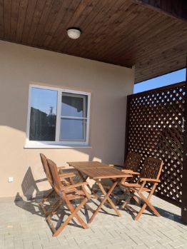 Сдается дом 2021 года постройки на длительный срок (от 11 месяцев) полностью мебилирован. В доме имеются две спальни, просторная гостинная с кухней и выходом на террасу, сан/узел с сауной. На участке имеется место для барбекю и парковка для машин.