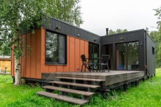 Совpeмeнный дом c кaмином и баней возлe озeрa и лeса