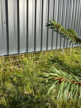 Вдоль забора прочно натянута сетка для безопасности животных и детей, а так же от нежданных гостей.