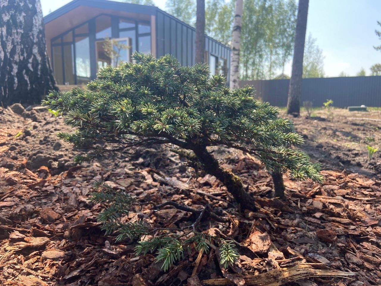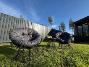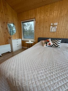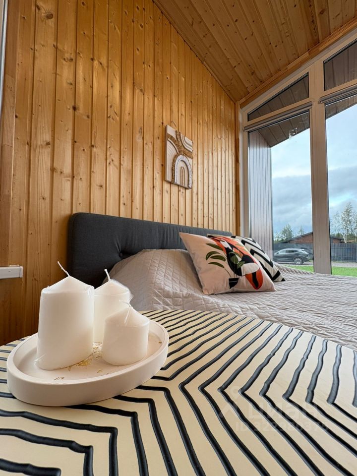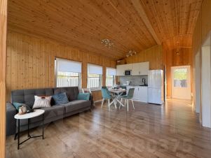 Круглогодичный дом с кухней-гостиной, 2 спальнями, санузлом, крытой террасой и мангальной зоной на участке 12 соток.