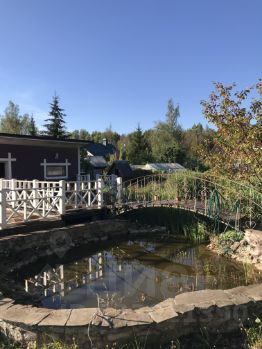Общая площадь участка 16 соток. На нем располагается двухэтажный дом (250 м2), место для отдыха на свежем воздухе с мангальной зоной, пруд с рыбой, спортивная площадка, гараж - навес для автомобиля, постройки для хоз. инвентаря. На участке растут березы, сосны, а также плодовые деревья.