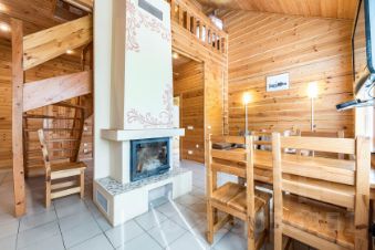 Небольшие, уютные коттеджи категории дуплекс-комфорт рассчитаны на проживание до 6 человек в каждом. На первом этаже расположена кухня-гостиная с камином, угловым диваном и телевизором. Камин добавит нотку романтики отдыху, особенно поздней осенью или зимой, когда наступят трескучие морозы. Отдельная комната с двуспальной кроватью. На этаже также находится санузел с душевой кабиной. На втором этаже одна открытая комната с двумя односпальными кроватями.