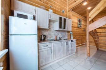 На первом этаже расположена кухня, в которой есть все необходимое: посуда, мебель, бытовая техника (холодильник, микроволновая печь, плита электрическая 2 конфорки, чайник)