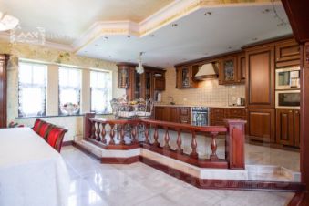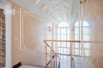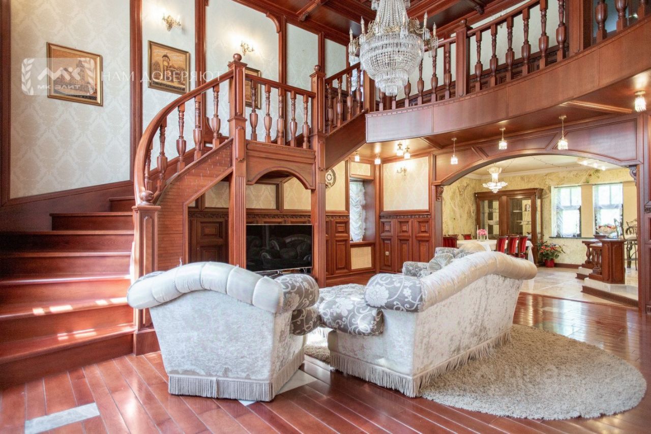 Весь дом отделан натуральными материалам — мрамор, дерево. Выполнен дизайнерский ремонт в неоклассическом стиле. Войдя в дом, вы попадаете в шикарную и очень уютную гостиную с мягкой мебелью, телевизором и камином. Гостиная ведёт в большую кухню со столовой зоной, обставленную качественной бытовой техникой. Отсюда вы можете выйти на террасу — идеальное место для завтраков и ужинов с близкими. Также предусмотрена отдельная большая гардеробная.