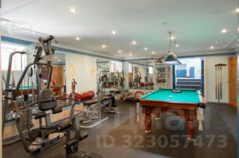 На первом этаже всё обустроено для вашего отдыха и здоровья: спортивный зал с тренажерами и бильярдным столом, отдельный зал с десятиметровым бассейном с функцией массажа, сауна с печкой на дровах, а также солевая комната.
