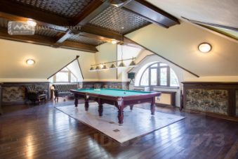 На четвертом этаже, большой зал с профессиональным бильярдным столом и балконом.