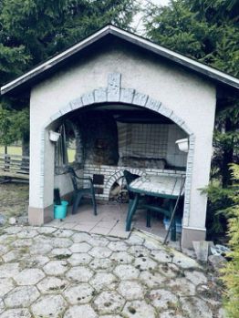 На благоустроенном участке — зеленая лужайка, просторная беседка с мангалом и коптильней, где приятно проводить вечера с близкими.