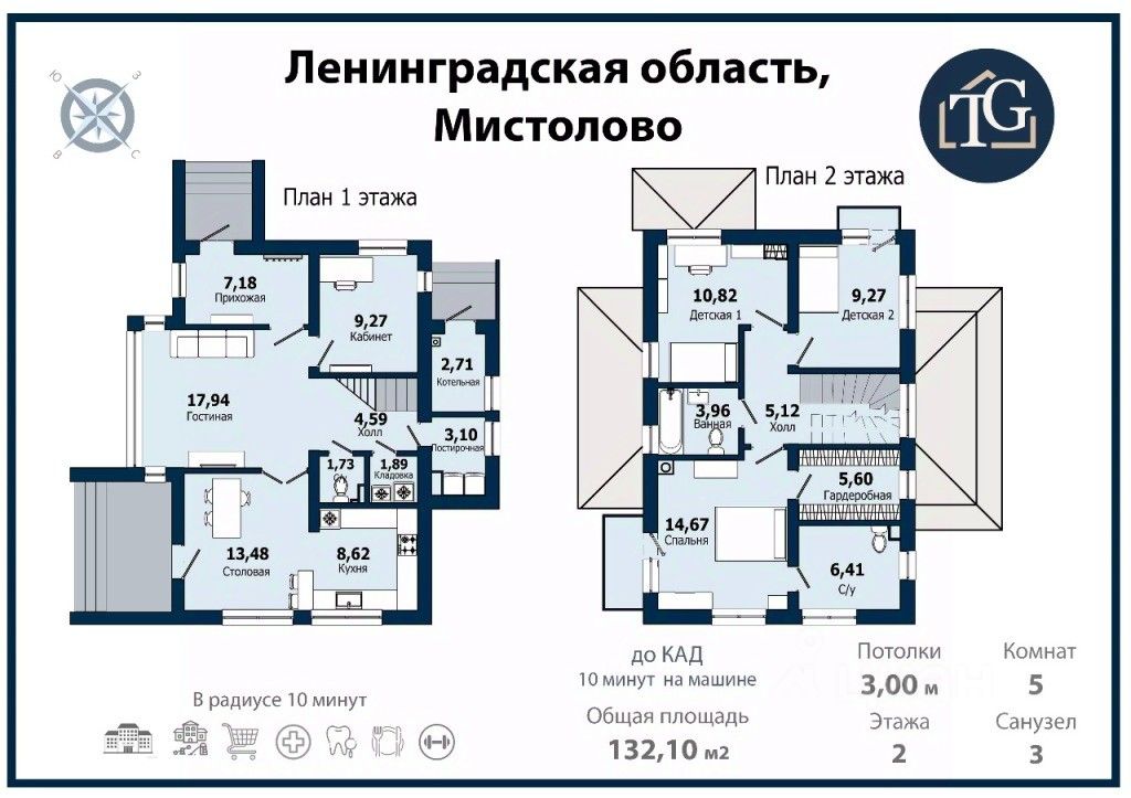 Сдаётся в длительную аренду 2-х этажный дом 132,1 кв.м. на участке 5,8 соток + баня и гараж. Мистолово, ЖК Близкое (отдельно-стоящий коттедж). Меньше 10 км до КАД.