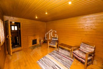 - баня деревянная с террасой (парная 180*180, помывочная 180*90, комната отдыха 290*390);