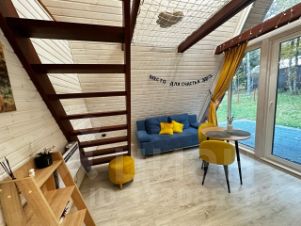Просторный A-frame домик рассчитан на комфортное размещение 4 гостей. Здесь есть всё для незабываемого отдыха: