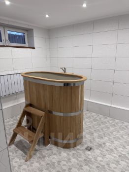 Обустроен оздоровительный банный комплекс (парилка, душевая, холодная купель). Здесь же размещена вместительная кладовая, включающая большую отапливаемую комнату со стеллажами и холодную комнату, которую можно использовать в качестве погреба. Есть просторный зал для занятий спортом и установки тренажёров, котельная со всем необходимым оборудованием. На данном этаже предусмотрен второй (чёрный) вход для персонала, а также размещена отдельная спальня и санузел для домработницы.