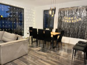 В доме большая гостиная , раздельная кухня. Стильная ванная комната и 4 просторные изолированные комнаты. В доме есть все необходимое для отдыха. В стоимость входят: чистое постельное белье и полотенца. Посуда, шампура, решетки для гриля. Стиральная и посудомоечная машинка, духовой шкаф, пылесос и утюг, так же предоставляем все расходные материалы к ним. Каждый месяц украшаем дом шарами, это возможность сэкономить ваши деньги