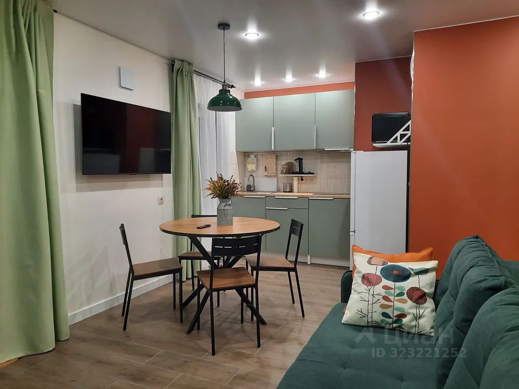 - Просторная кухня-гостиная с раскладным диваном и телевизором