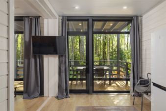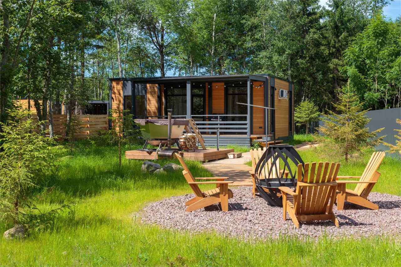Современные коттеджи с кухней-гостиной и одной спальней.