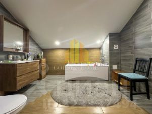 На втором этаже расположены: мастер спальня (20 кв.м) с собственной гардеробной зоной (8,5 кв.м). Гостевая комната и детская комната. Большая ванная 10,2 кв.м.