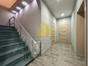 На первом этаже дома расположены: кухня - гостиная (35 кв.м.) с панорамными окнами, полностью оборудована мебелью и техникой. Кабинет (12,5 кв.м), при необходимости его можно переоборудовать в спальную комнату. Ванная комната (9.5 кв.м.) и техническое помещение с выделенной гардеробной зоной.