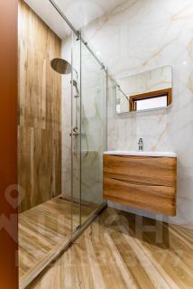 Полы из керамогранита. Лестница на второй этаж из натурального гранита. Три санузла в доме и один в банном комплексе.