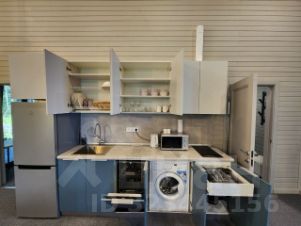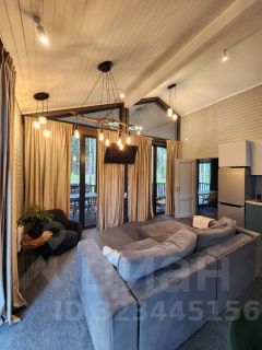 Просторная гостиная-кухня с дизайнерским диваном - идеальное место для семейных вечеров.