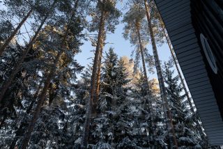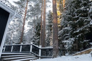 хвойный лес рядом — сосны и ели создают сказочную атмосферу;