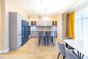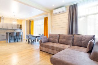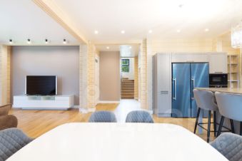Дома построены из клееного бруса, одного из наиболее экологичных и дышащих материалов. Каждый дом общей площадью 250 кв.м. представляет собой два этажа с продуманными планировками. Также имеется навес для парковки двух автомобилей. На первом этаже расположены кухня-гостиная, гостевая спальня и санузел с кладовкой. Открытая терраса 60 кв.м.. На втором этаже : 3 спальни( одна из которых мастер-спальня) и два санузла. Дом полностью мебелирован и оснащен бытовой техникой. Функциональная встроенная кухня со встроенной техникой от ведущих марок LIEBHERR, BOSCH,ELECTROLUX. В каждой комнате есть кондиционер. На полу : керамогранит и натуральный дубовый паркет!! Окна выходят на благоустроенный участок.