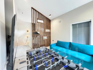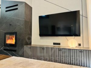 на первом этаже расположилась просторная кухня-гостиная, со всей современной встроенной техникой и стильной фурнитурой, большой обеденный остров выполнен в индивидуальном эксклюзивном исполнении из антивандальных материалов. Большая зона отдыха с мягкой мебелью и дровяным камином- идеальное место для общения в кругу семьи и друзей.
