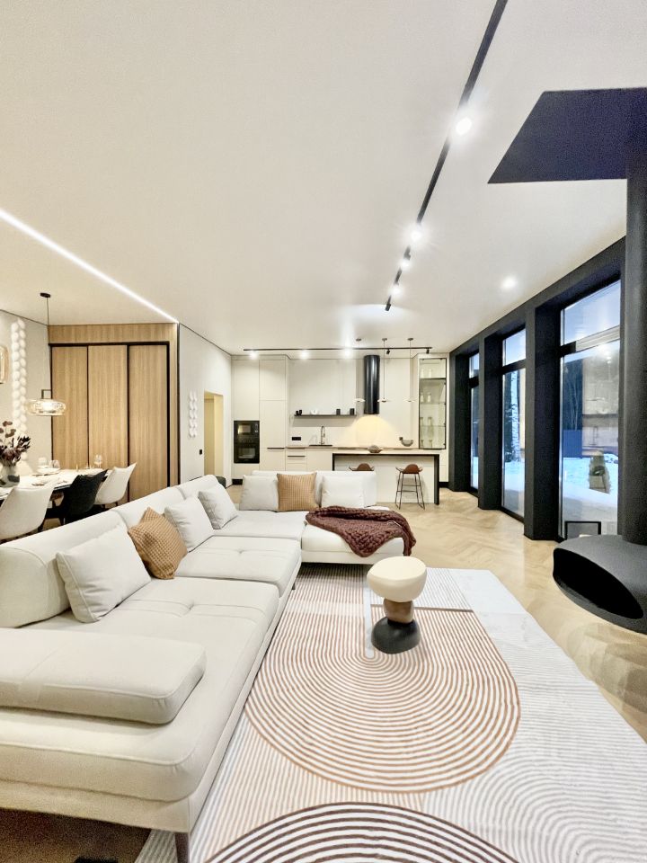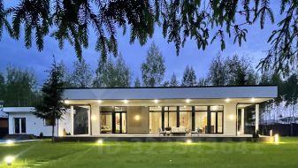 Совершенно новый дом бизнес класса с панорамой на хвойный лес .