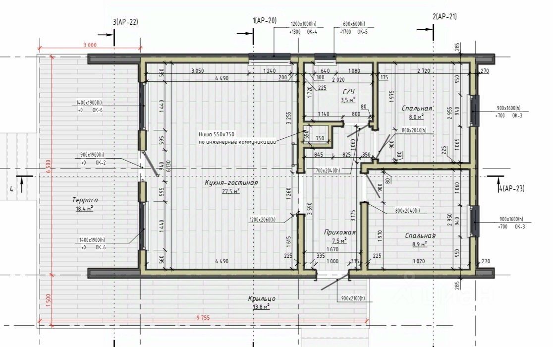 В кухне-гостиной - кондиционер и рекуператор с регулировкой температуры воздуха.
