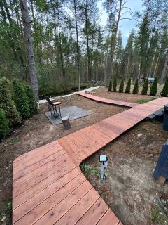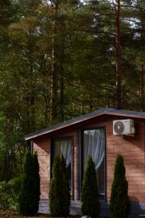Семейные гостевые дома расположены в лесном уголке с видом на озеро и сосны. Тишина и приватность — вокруг только природа: шелест листвы, пение птиц и речка рядом, без постороннего шума.
